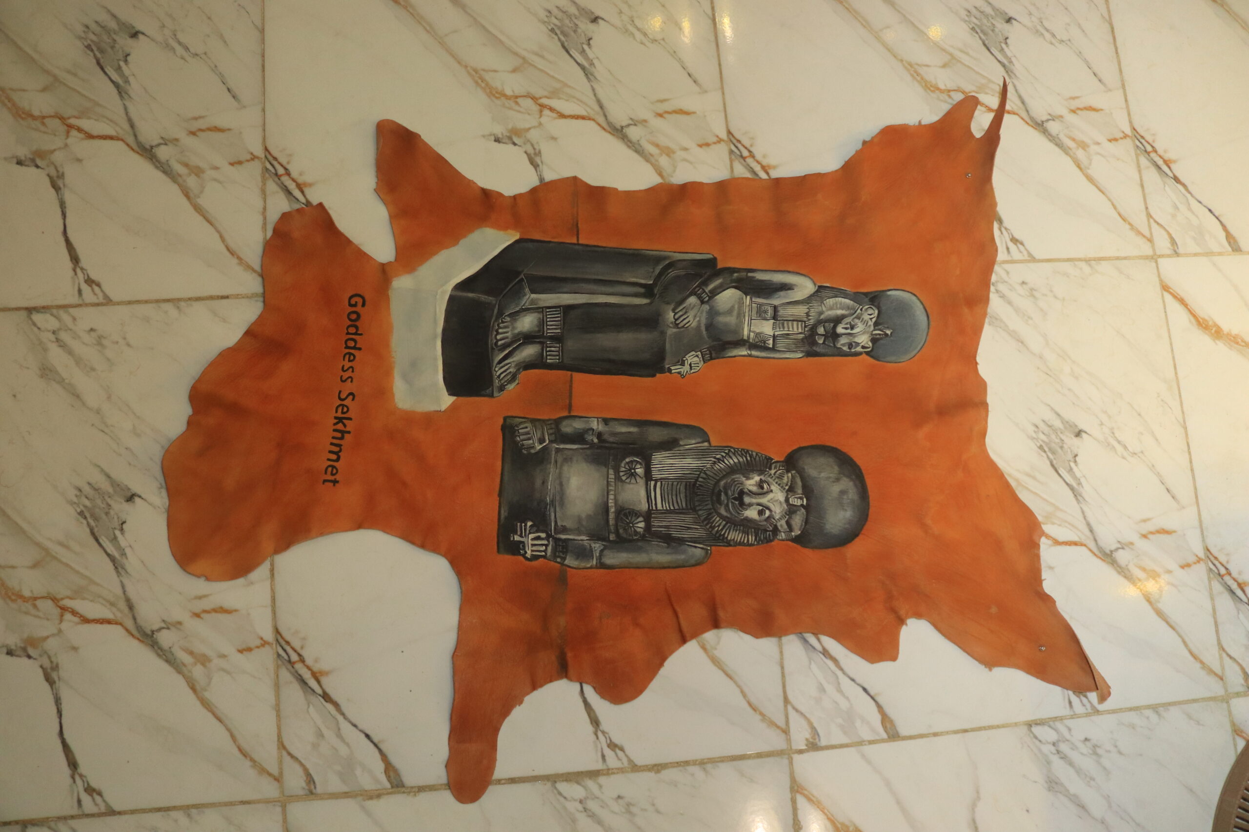 Hand-Painted Wooden Wall Art – Goddess Sekhmet Enthroned